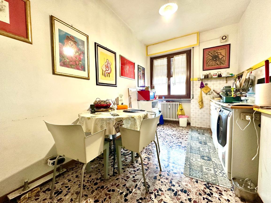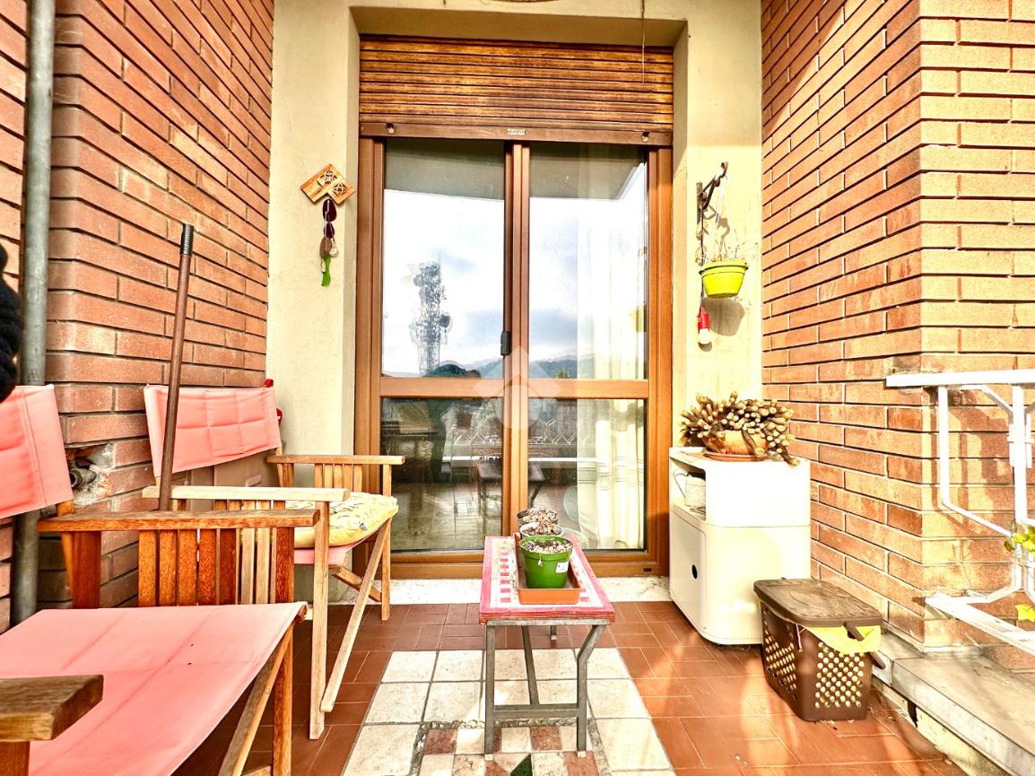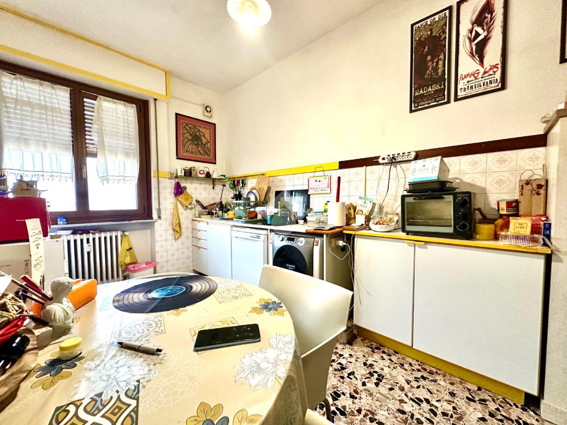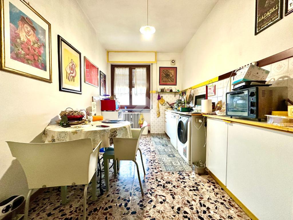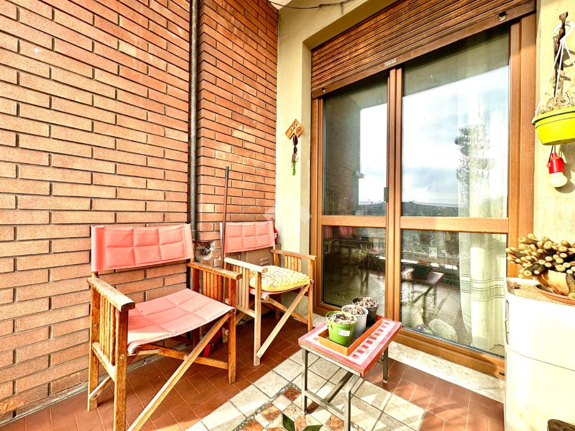 L'immobile si trova a un piano alto, facilmente accessibile grazie all'ascensore. La disposizione interna comprende tre locali ben distribuiti: la zona giorno è formata da una cucina abitabile, un soggiorno luminoso con accesso al terrazzino vivibile ed in fine una spaziosa camera da letto, a servizio un bagno funzionale. La zona giorno si apre su un balcone, ideale per momenti di tranquillità all'aperto, mentre un ampio terrazzo offre uno spazio aggiuntivo per godere della vista circostante. La posizione centrale garantisce la vicinanza a tutti i servizi essenziali, rendendo questa proprietà una scelta pratica e confortevole per chi desidera vivere in città senza rinunciare alla comodità.
