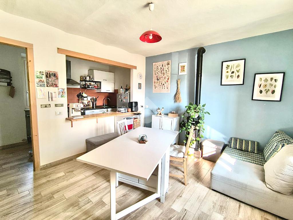 Piano Terra (60 mq): Un’accogliente zona giorno con cucina e sala da pranzo, completata da una spaziosa camera da letto, bagno moderno e pratico sottoscala/ripostiglio.Piano Superiore: Accessibile tramite una suggestiva scala in pietra, offre due ampie stanze luminose già predisposte per gli impianti, ideali per personalizzare la zona notte o creare un secondo bagno.